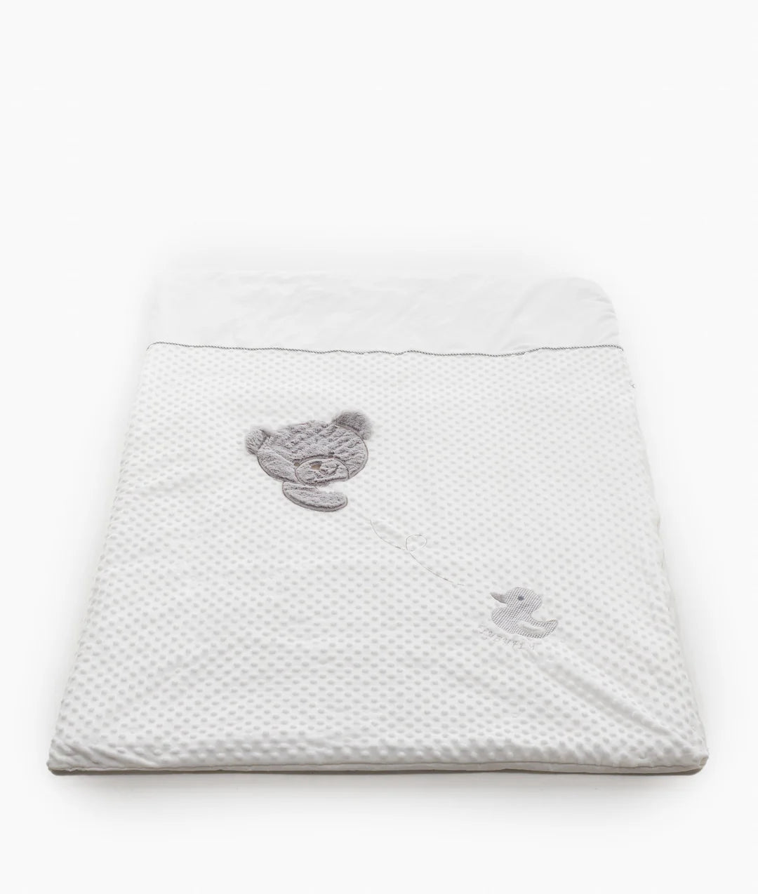 Our baby Popo Bear & Duck Elegant Dotted Blanket for all Seasons comes with a removable duvet cover, perfect for cribs and transitional toddler beds for ages 0-6 years. The zippered cover makes it suitable for all seasons, with a soft, silky velvet top layer and a 100% cotton bottom layer. The hypoallergenic duvet provides warmth and comfort.